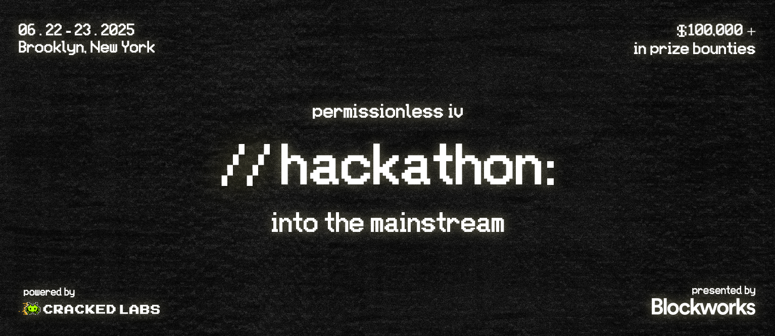 Join us June 22–23 in Brooklyn for the Permissionless IV Hackathon — a 36-hour sprint hosted by Cracked Labs and Blockworks where top builders turn ideas into real products. Come to launch, not just hack.